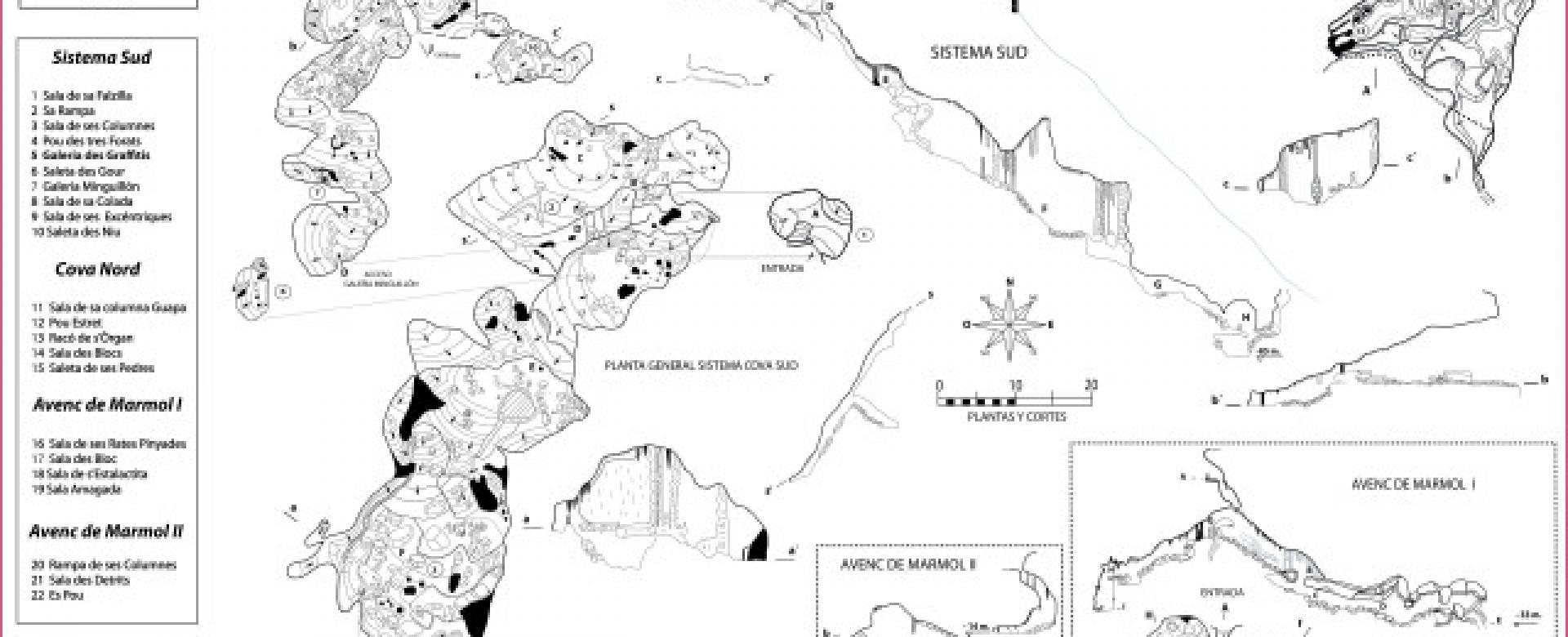 La cueva des Marmols es la más profunda de la red de cuevas de Na burguesa, abundan las formaciones en sus salas y descenderemos hasta la cota -85 metros.